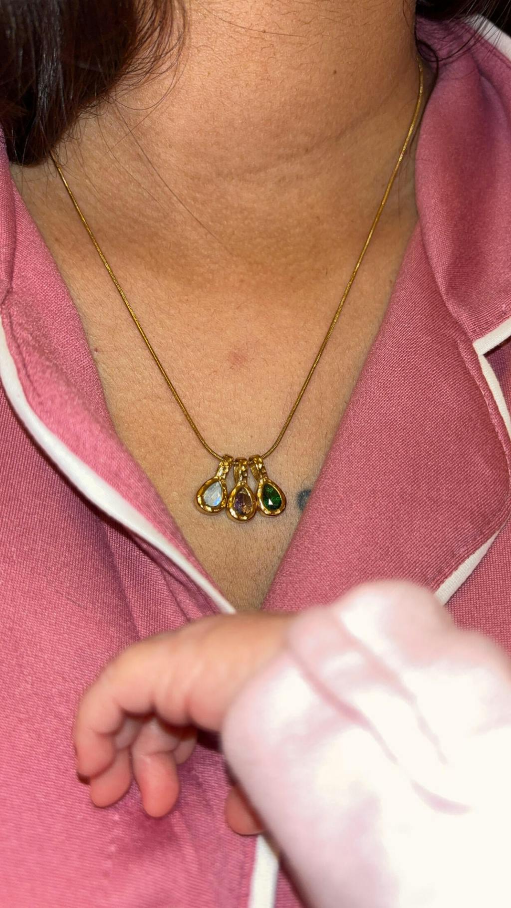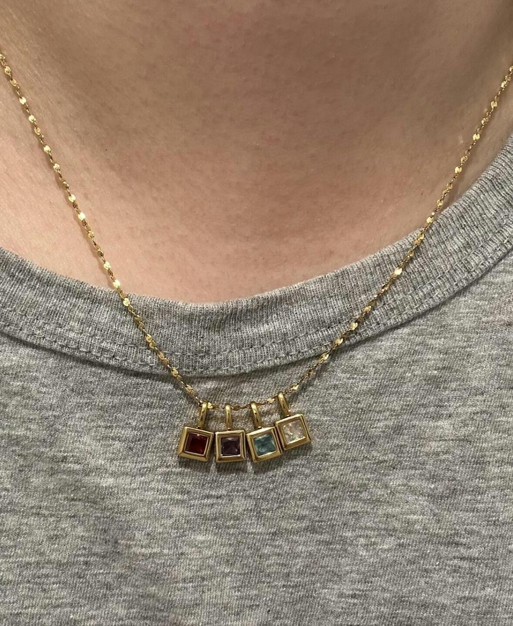 In love with the design and quality of this necklace. I purchased it for myself after my daughter was born and used mine, hers, and my husband’s birthstones. I couldn’t be happier