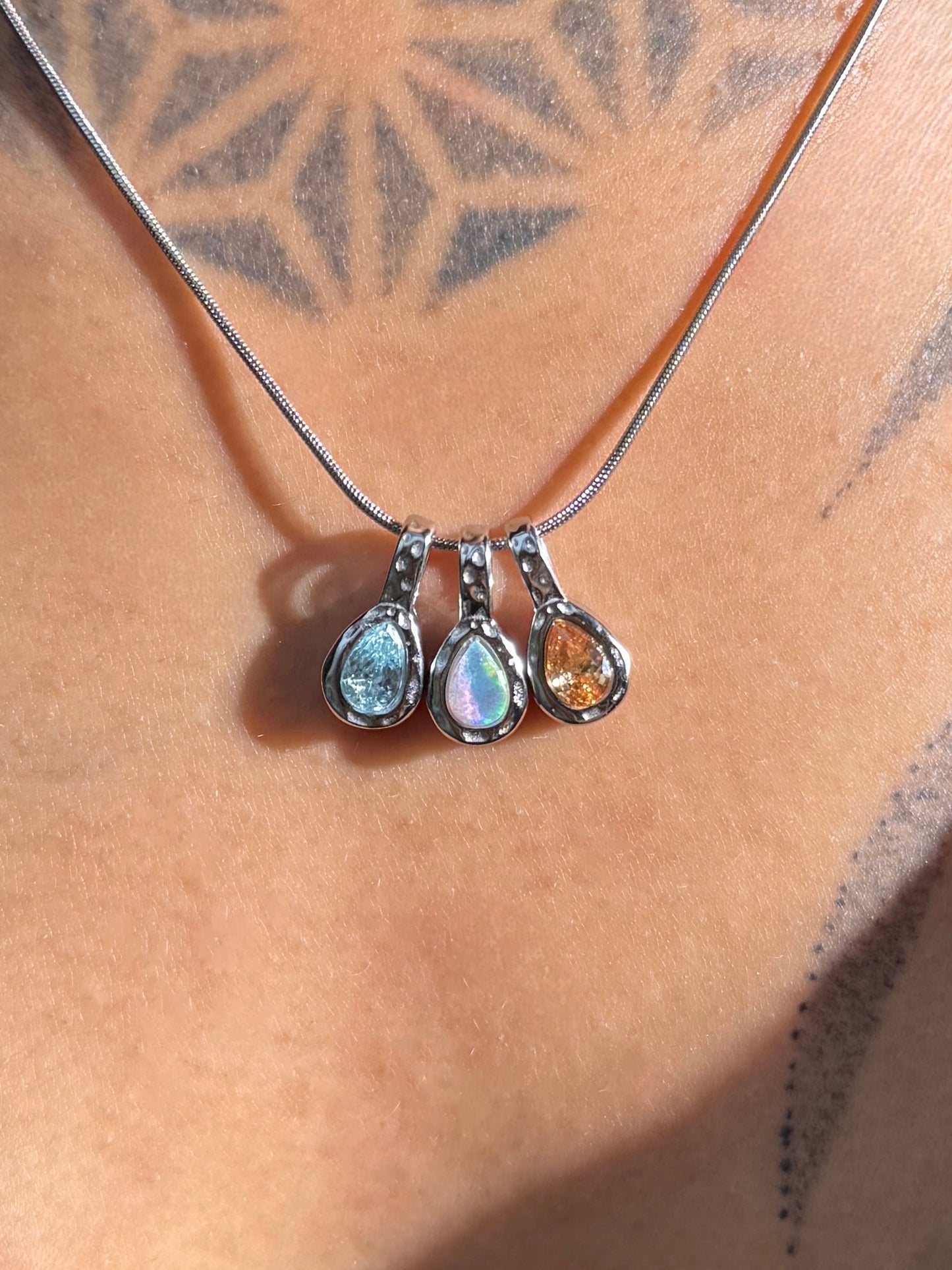 Hammered Droplet Birthstone Necklace